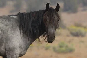 Blue Zeus is a very special horse to Skydog and the founder, Clare Staples. For years, she had followed and admired photographs of this stunning blue roan stallion, the heart of Wyoming’s Red Desert. He was a favorite of many wild horse photographers and she regularly loved and commented on images of him. For Clare, when Blue Zeus was in the wild with his family, he was her “North Star” guiding her fight to keep mustang families free and together.